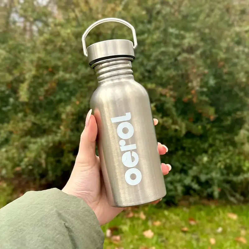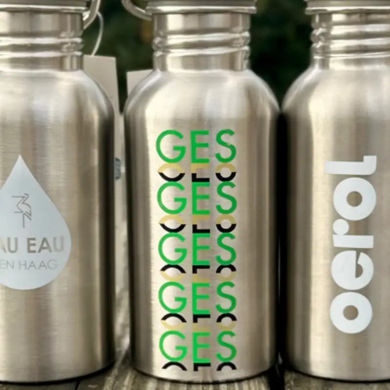 RVS Urban flessen in blank staal 500 ml, zónder Retulp logo. Deze duurzame waterflessen zijn identiek aan ons populaire Urban model – maar dan neutraal uitgevoerd. Ideaal voor bedrijven of organisaties die een stijlvolle RVS fles met eigen logo willen, maar geen zichtbare Retulp merknaam op de fles.