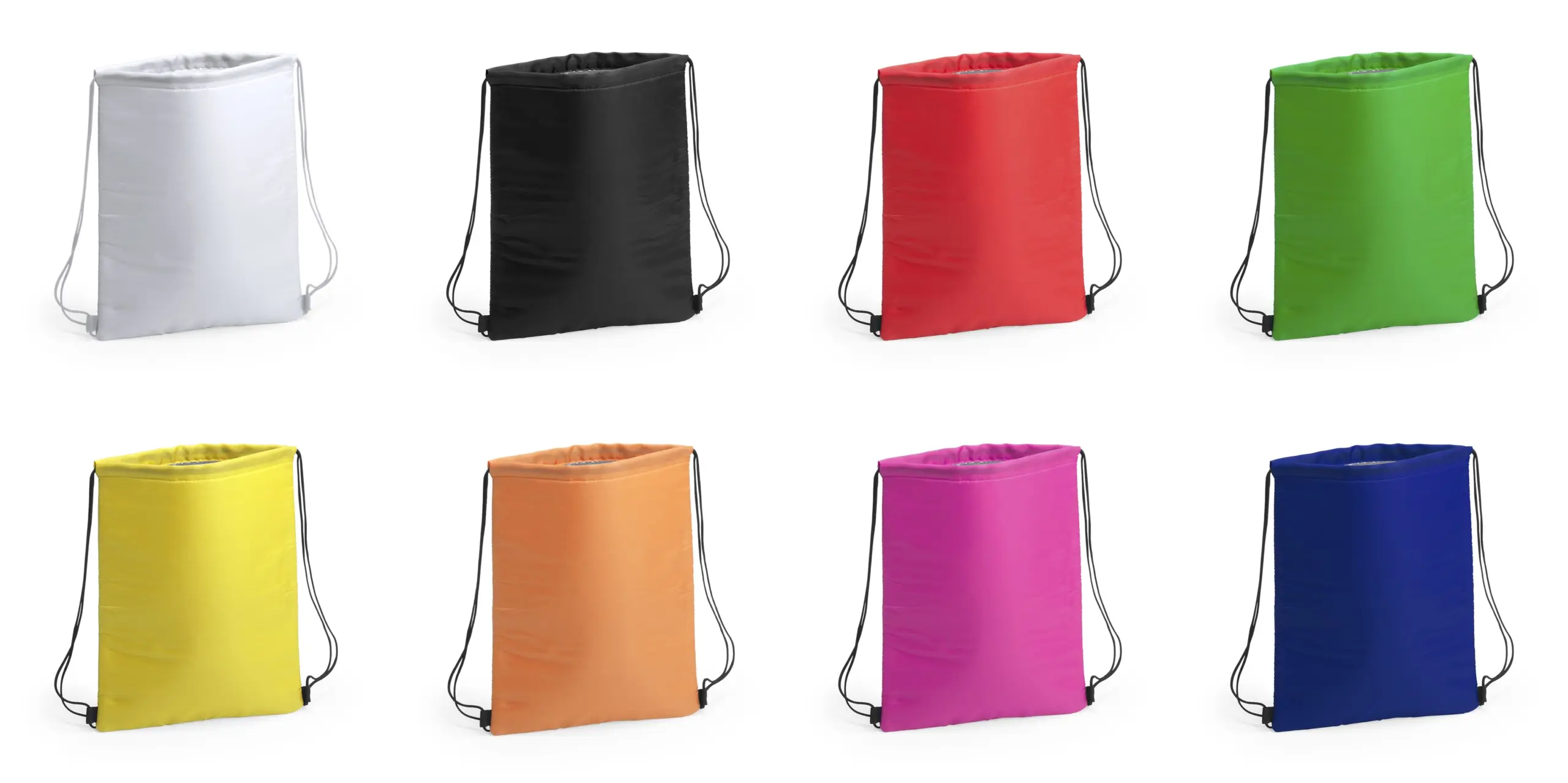 Rugzakje van zacht 210D polyester. Aluminium gewatteerde binnenkant om de temperatuur beter te bewaren en comfortabel te dragen dankzij de zwarte zelfsluitende trekkoordhandgrepen. Verstevigde hoeken om de grote maximale capaciteit van 4 liter te dragen. Verkrijgbaar in 8 kleuren.