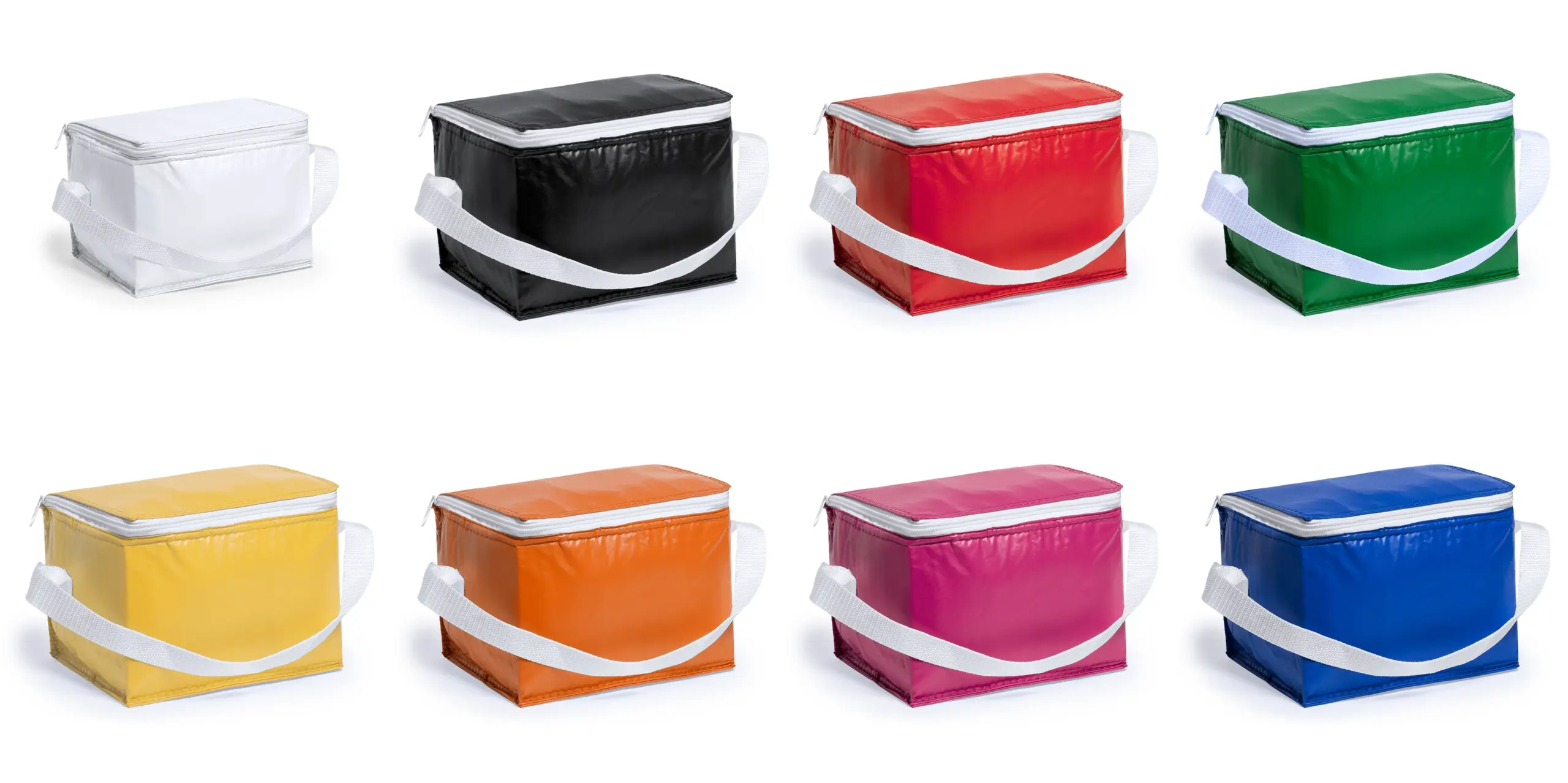 Koeltas van duurzaam PVC. Met compartiment met een inhoud van 3,2 liter, ritssluiting en verstelbare schouderband. Met aluminium afgewerkte isothermische binnenkant. Verkrijgbaar in maar liefst opvallende kleuren.