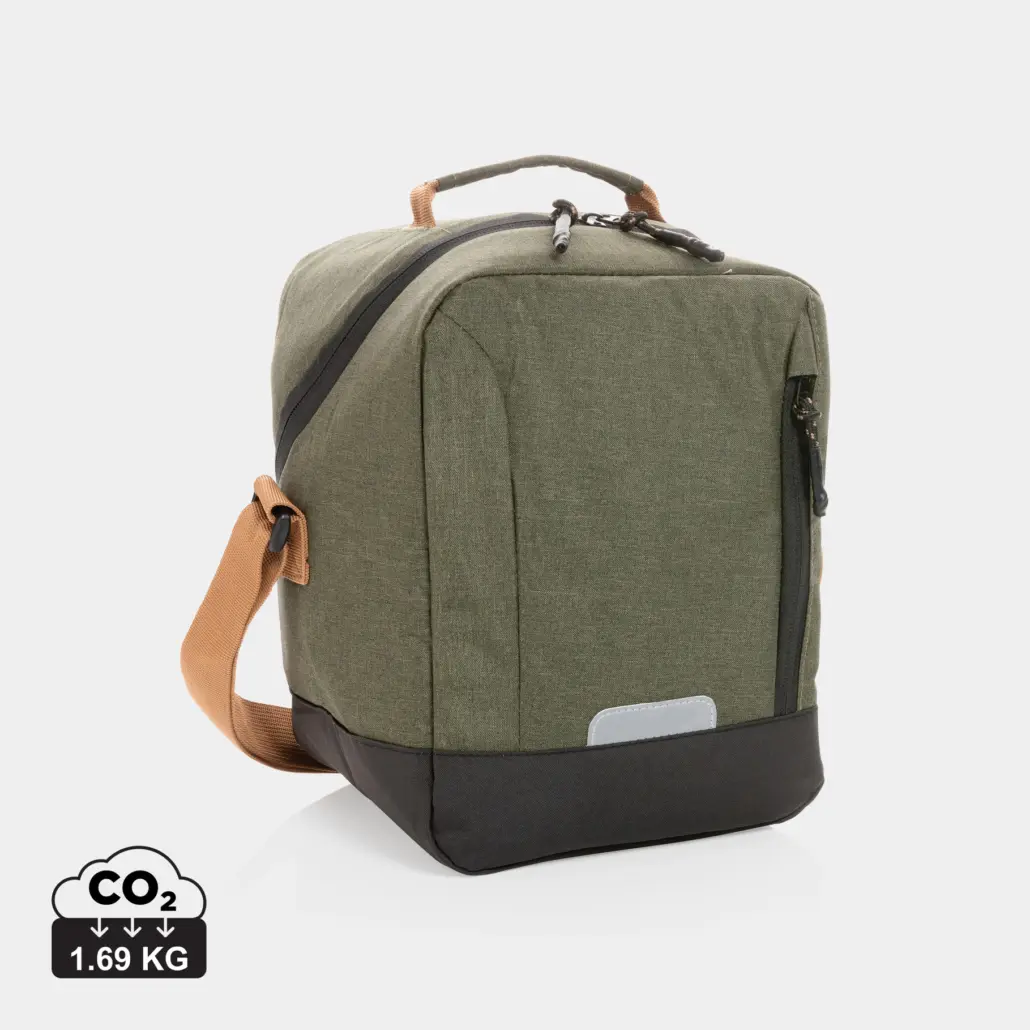 Koeltas van RPET 300D polyester. De binnenzijde is gelamineerd met aluminiumfolie en 3mm schuim waardoor de inhoud langer koel blijft. De tas heeft een inhoud van 3 liter. Beschikbaar in 3 kleuren. Isolatie materiaal: aluminium +3mm schuim.
