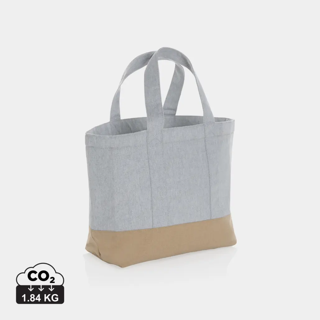 Koeltas van gerecycled canvas, en kan vervolgens plat worden opgevouwen om ruimte te besparen. Geschikt voor maximaal 8 blikjes. Met IMPACT tracer die het echte gebruik van gerecyclede materialen valideert. Het gerecyclede canvas is ongeverfd en gebruikt in zijn ruwe vorm, zonder chemicaliën van verven of bleken.