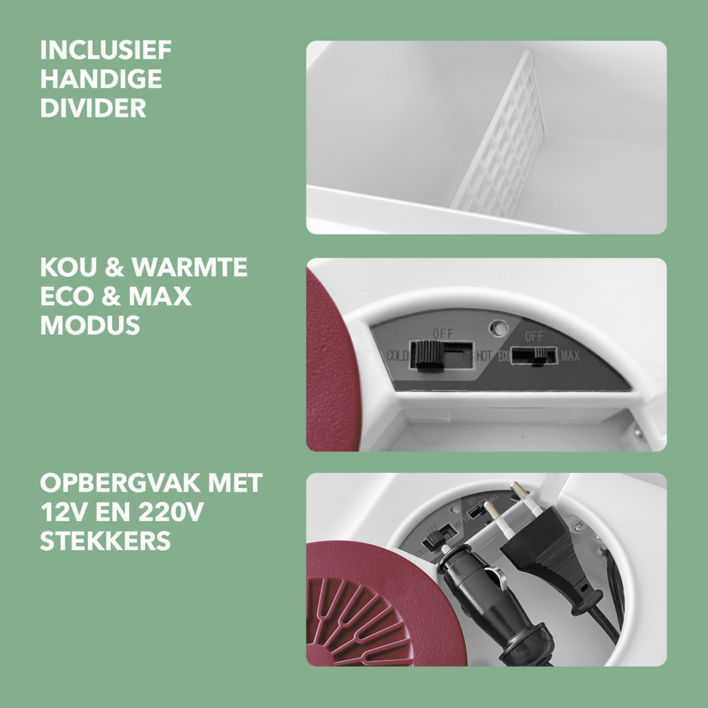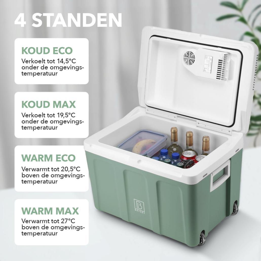 Koelbox voor kampeerders en outdoorliefhebbers, vakantiegangers en roadtrippers, festivalgangers, bootbezitters, professionele chauffeurs, vriendengroepen en gezinnen. Deze koelbox is gemaakt van stevig, maar lichtgewicht materiaal. In 5 mooie kleuren leverbaar en deze ruime 40L elektrische koelbox beschikt over wieltjes die mobiliteit bieden.