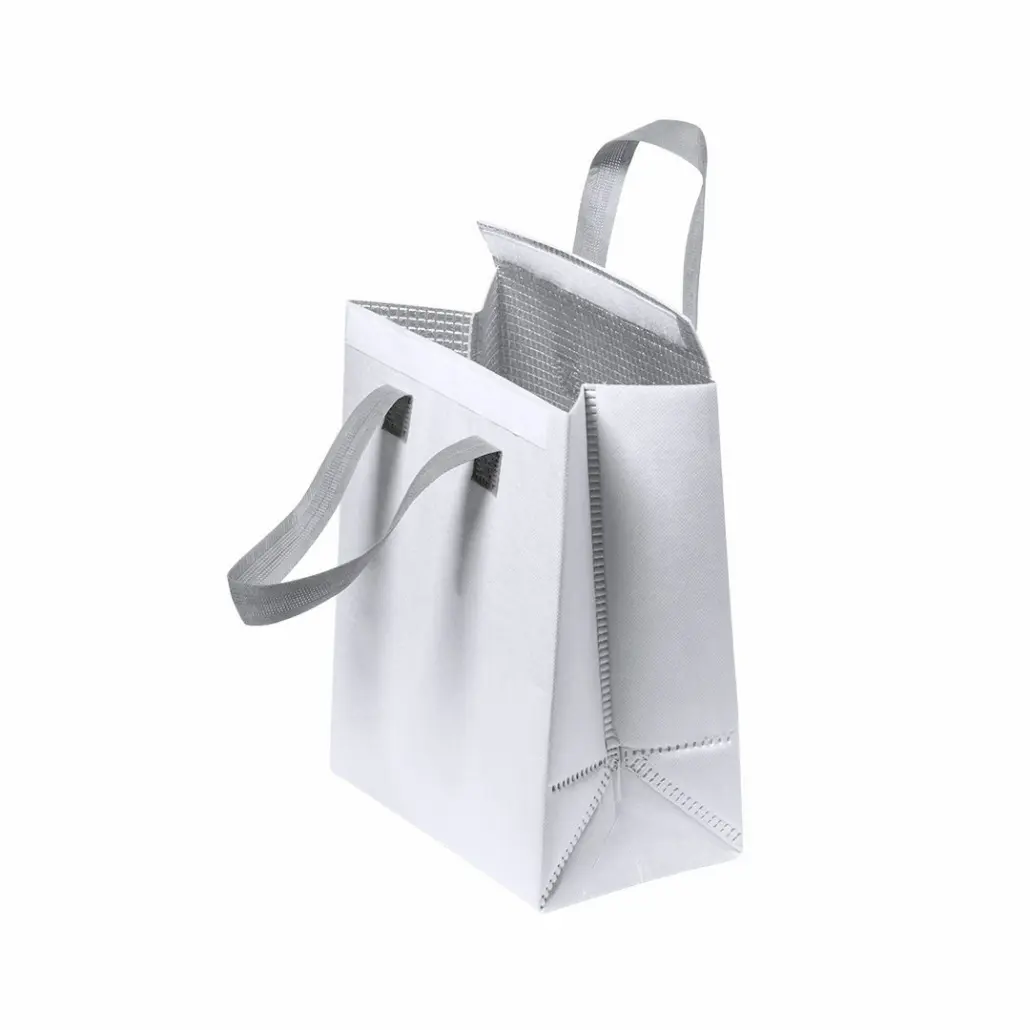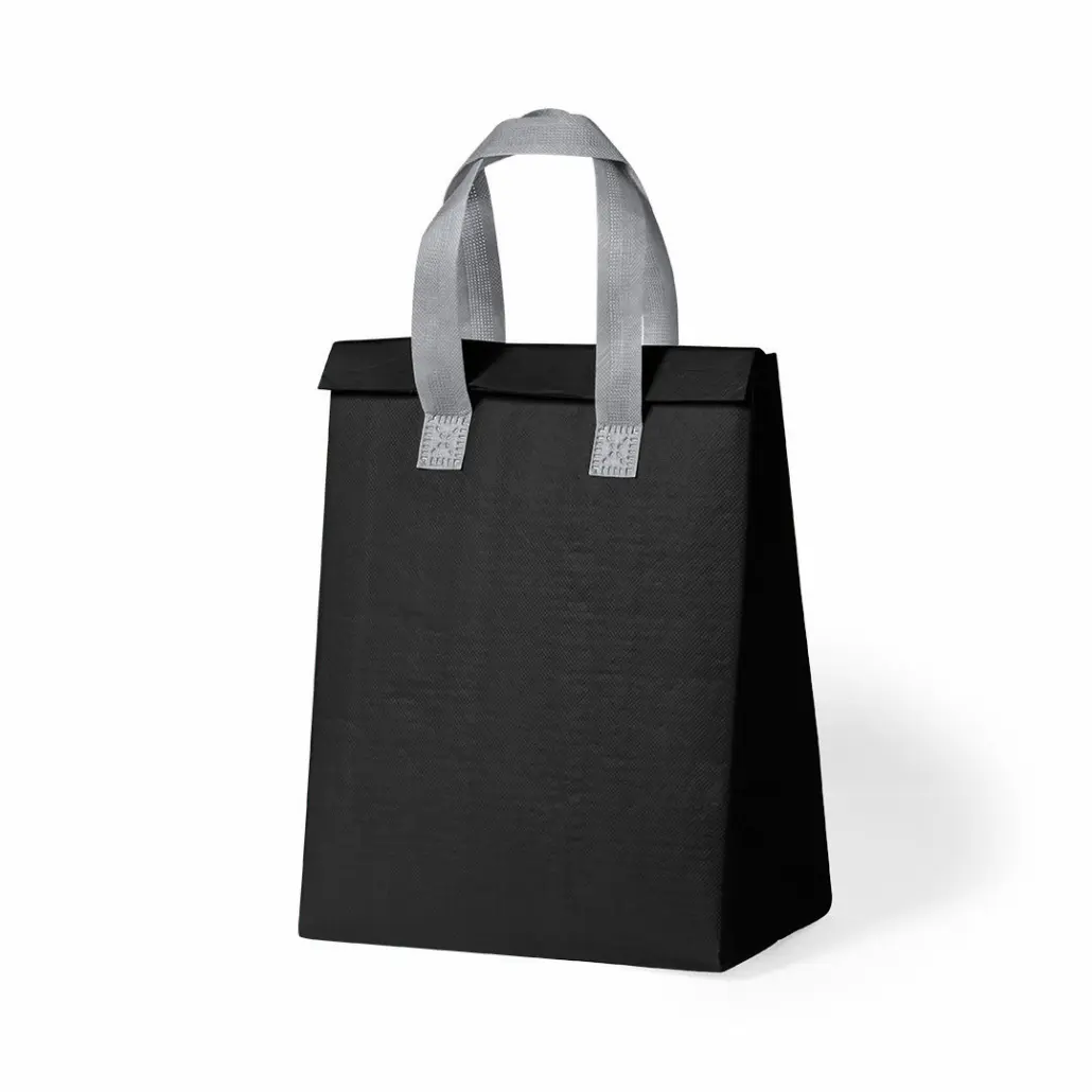 Koeltas met klittenbandsluiting en isothermische binnenkant. In vele kleuren. Bedrukt ca. € 4.