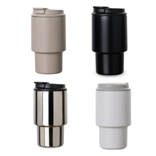 Roestvrijstaal: Onze roestvrijstalen koffiebekers en reisbekers zijn uiterst duurzaam, licht van gewicht en volledig recyclebaar, ideaal voor een lange levensduur en hergebruik.