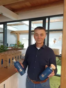 Superleuk dus dat wij een mooie blauwe Urban Thermosfles mochten graveren voor deze duurzame ondernemer die ook nog eens bij ons in de buurt gevestigd is. Er is gekozen voor een gravure van het logo omdat dit de meest duurzame manier van personaliseren is. Daarbij gaf een gravure op deze fles met dit strakke logo ook gelijk de gewenste uitstraling.