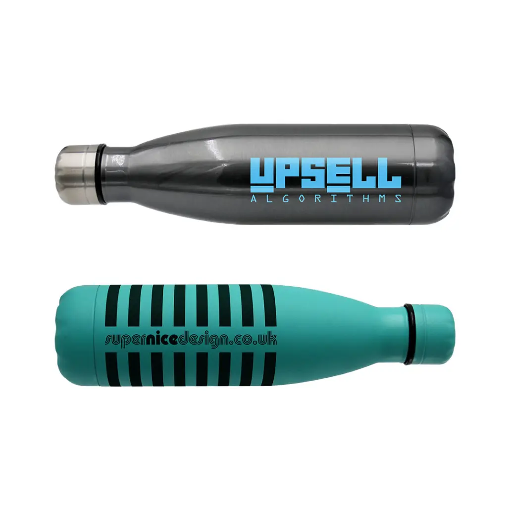 Dubbelwandige RVS drinkfles 500ml, beschikbaar in alle kleuren (ook eigen PMS)! Volledige full-colour bedrukking rondom: ca. € 11.