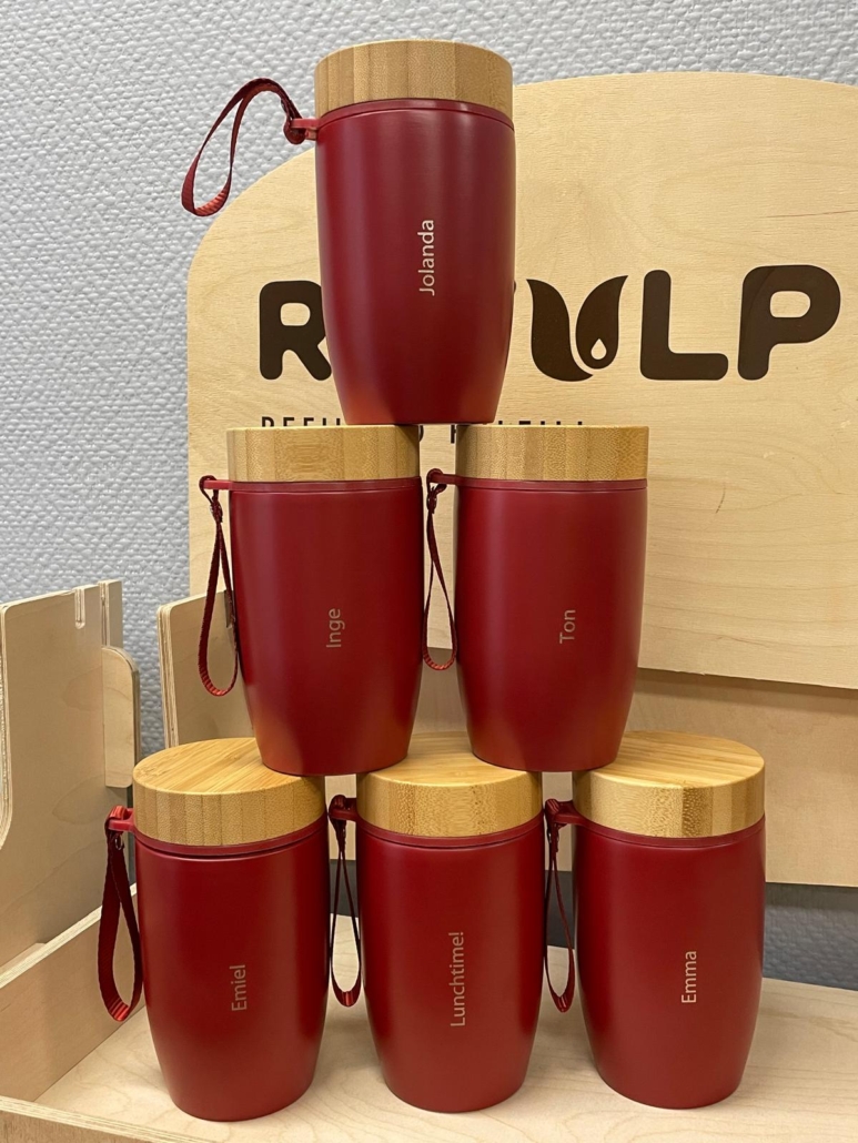 Vanaf 12 stuks al te graveren met logo en vanaf 48 stuks te bedrukken met eigen logo of print. All-in prijs bij 500 stuks € 14,75 inclusief bedrukking, instelkosten en transport. Kom bij ons langs in Apeldoorn of mail ons voor de prijslijst met alle herbruikbare bekers en/of gratis digitale proefdruk met jullie print. Retulp werkt met duidelijke en scherpe all-in prijzen. Bij ons dus geen onverwachte meerkosten en je weet precies waar je aan toe bent!