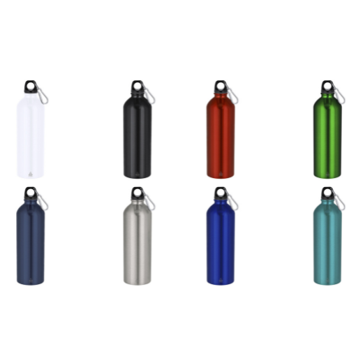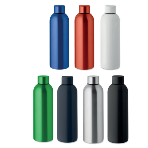 750 ml waterfles. Gerecyclede roestvrijstalen waterfles, keuze uit 7 trendy kleuren. Drinkfles met RVS schroefdop. Sublimatie bedrukking mogelijk (full color).